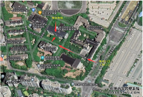 1.考试地点设在湖北省武汉市东湖生态旅游风景区梨园武汉纺织大学东湖校区,所有考生均从东门进入考点(如下图所示)。为了便于大家查找,请各位考生导航时务必选择“武汉纺织大学东湖校区(东门)”。